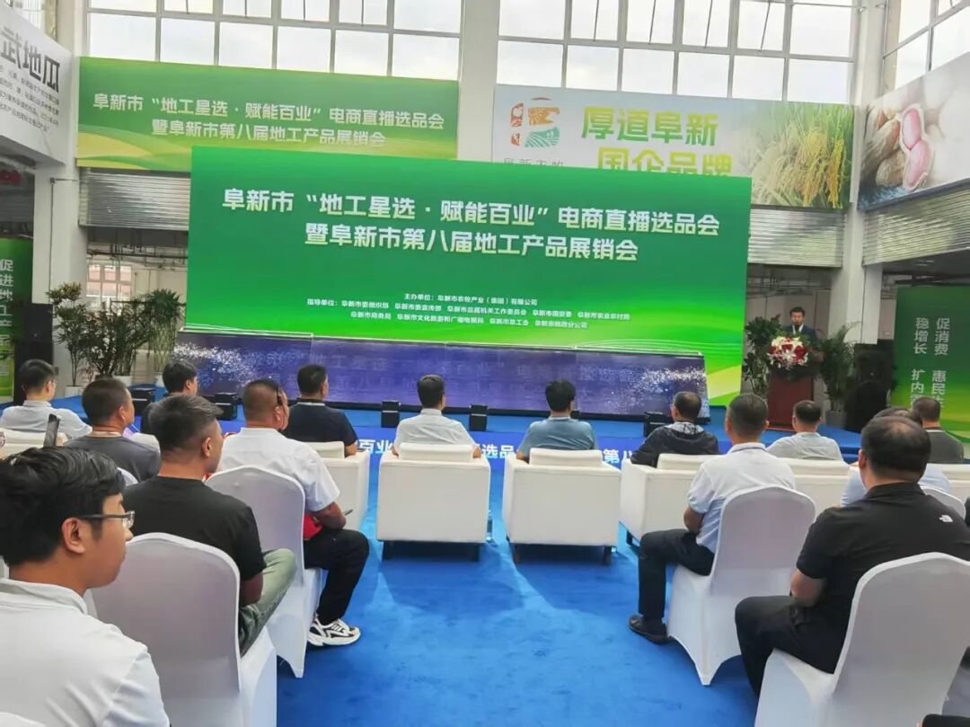 9月16日,由阜新市农牧产业(集团)有限公司主办,市委组织部、市委宣传部、市商务局等多部门指导的阜新市“地工星选・赋能百业”电商直播选品会暨阜新市第八届地工产品展销会启动仪式,在马家店大厦二楼正式拉开帷幕。市直相关单位领导,省内外电商平台负责人、网红达人,阜新地工产品生产企业代表、电商直播基地负责人及第一书记代表等200余人参会。