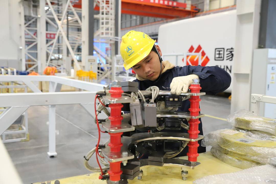 三一(阜新)智能制造产业园内,工人们正在生产。