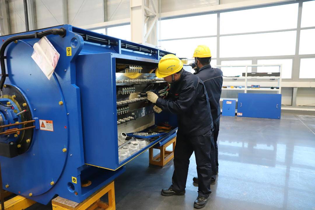 3月31日,三一(阜新)智能制造产业园生产车间内,崭新的高速双馈发电机整齐列队,经过最后一轮调试检测,顺利完成组装,正式下线。几乎同一时间,百米之外的特变电工新能源阜新公司总装车间里,红色幕布缓缓揭开,阜新首台静止无功发生器(SVG)产品惊艳亮相,标志着该产品全面进入量产阶段。