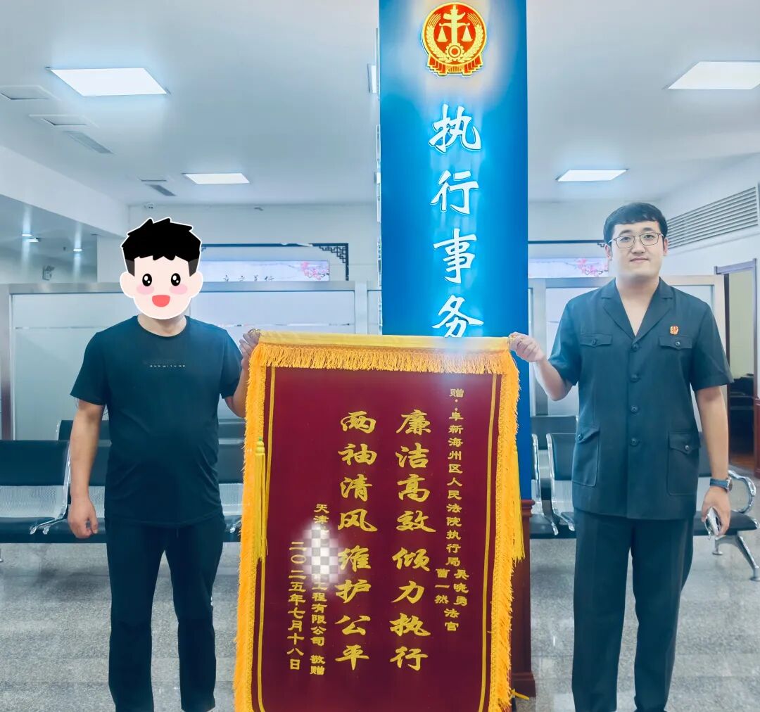 9月4日,天津公司为表达对海州区法院执行工作的认可与感谢,专程送来“廉洁高效倾力执行两袖清风维护公平”的锦旗,字里行间满含对法院高效执行、维护企业合法权益的由衷敬意。(本案当事人均为化名)