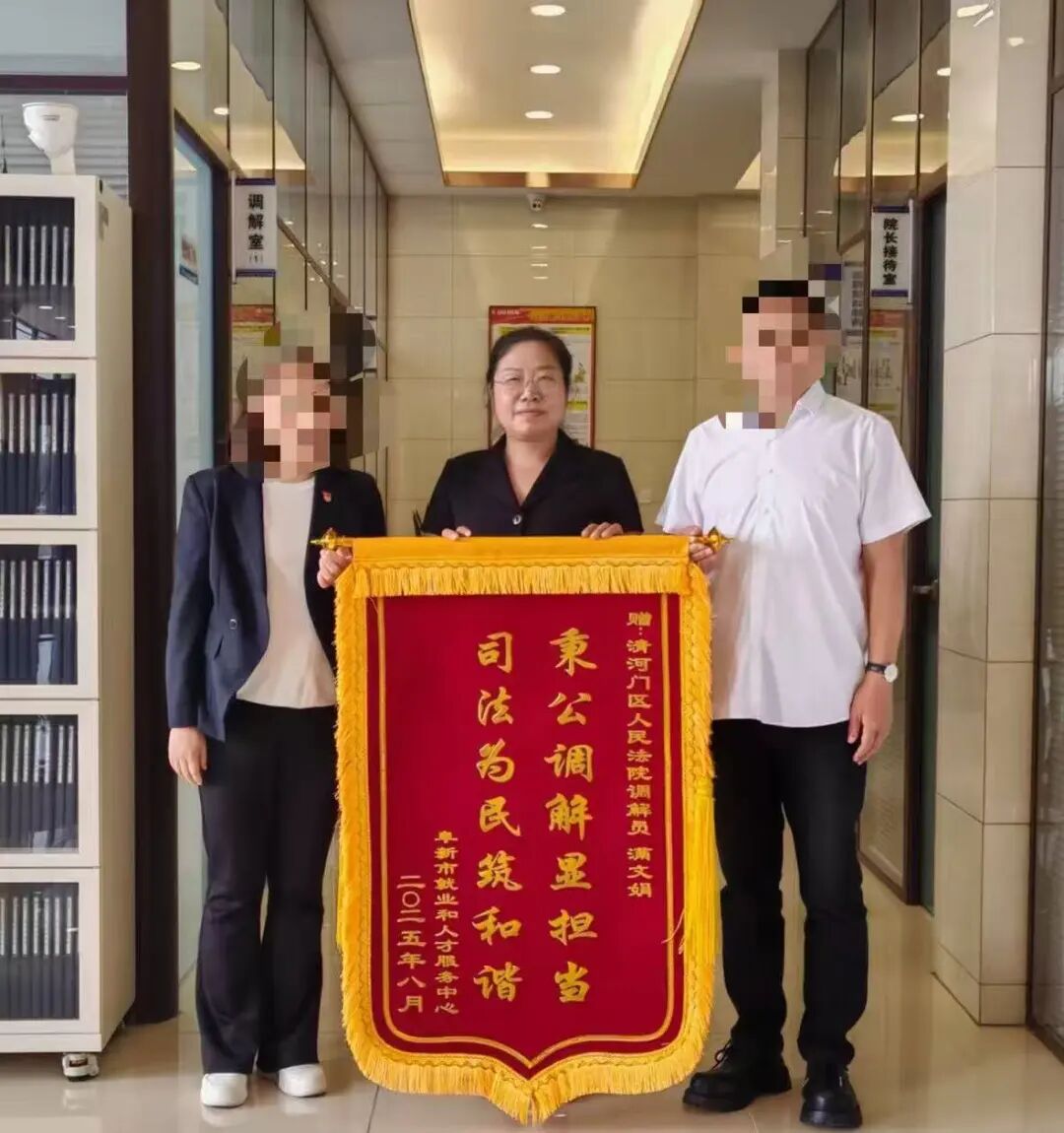 “谢谢您帮我们解决了大难题!”近日,阜新市就业和人才服务中心工作人员专程来到清河门区人民法院,将一面写有“秉公调解显担当,司法为民筑和谐”的锦旗,送到调解员满文娟手中,连连表达着感激之情。