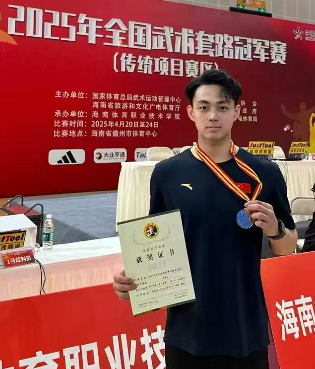 踏入北京体育大学,陈奥东在专业训练与学术研究中都取得了优异成绩。在2024年校运会中,他获得男子自选刀术第一名、通臂拳第二名;2025年又斩获男子螳螂拳第一名、二人对练第二名。