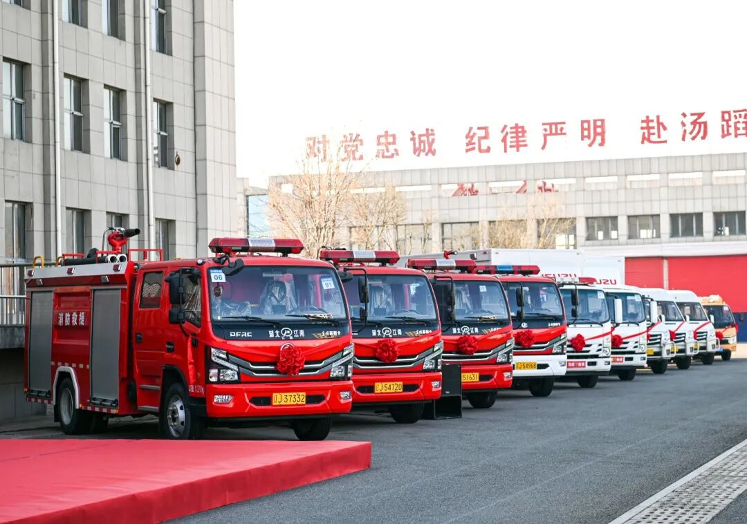 仪式现场,与会领导向各县区和乡镇专职消防队代表交付专用消防车辆钥匙,分发泡沫消防车8辆、水罐消防车49辆、森林火灾扑救特类车11辆、抢险车12辆、消防摩托车45辆、各类保障车26辆,共计151辆。